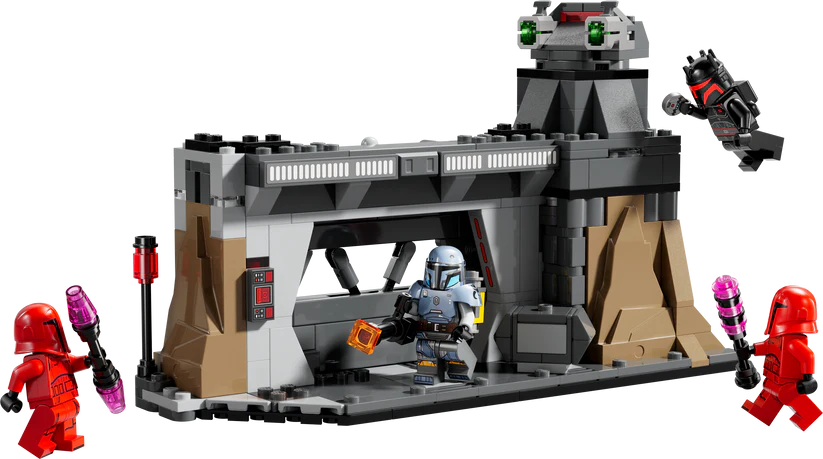 Help Paz Vizsla defend the LEGO® brick-built Mandalorian underground base from Moff Gideon and his Praetorian Guards.