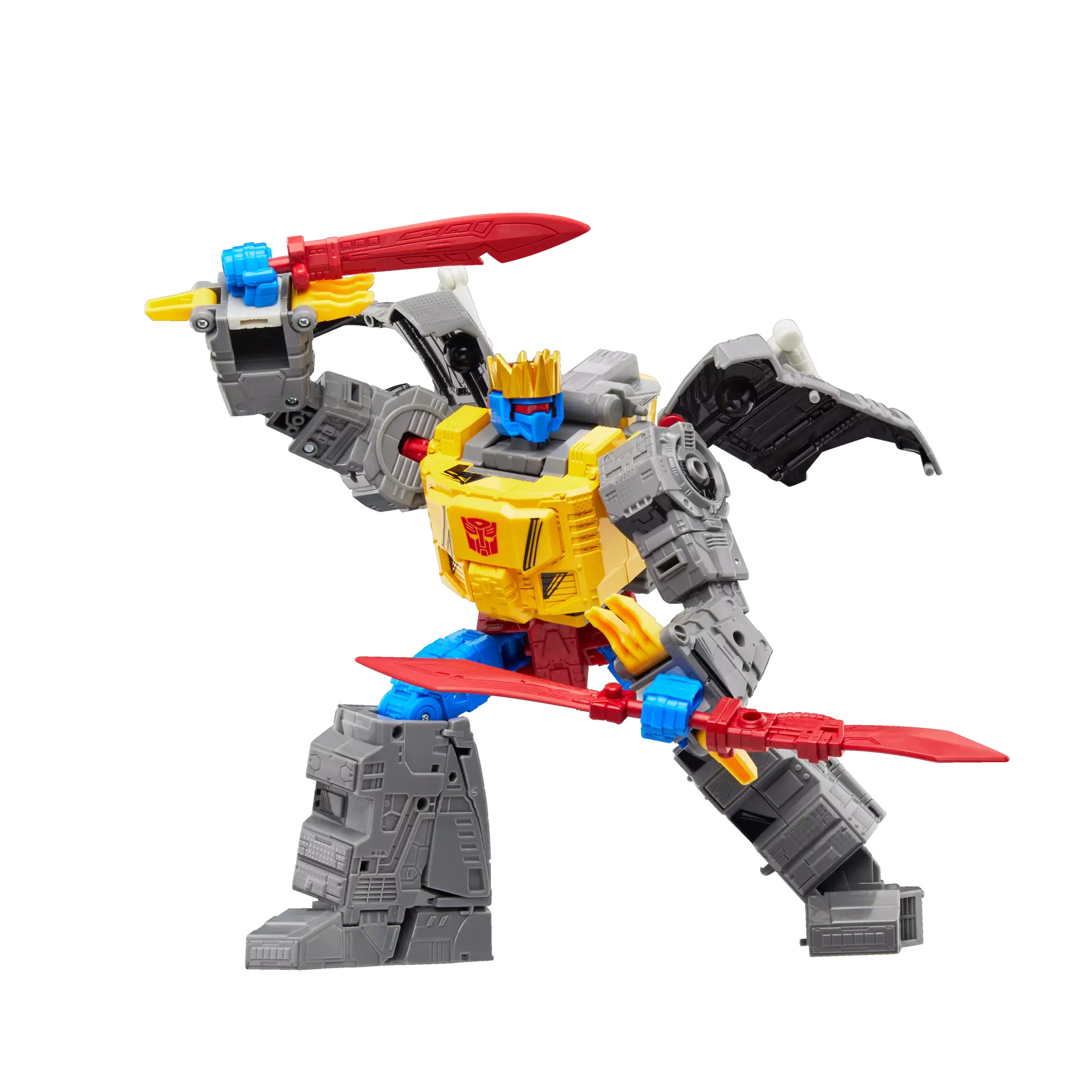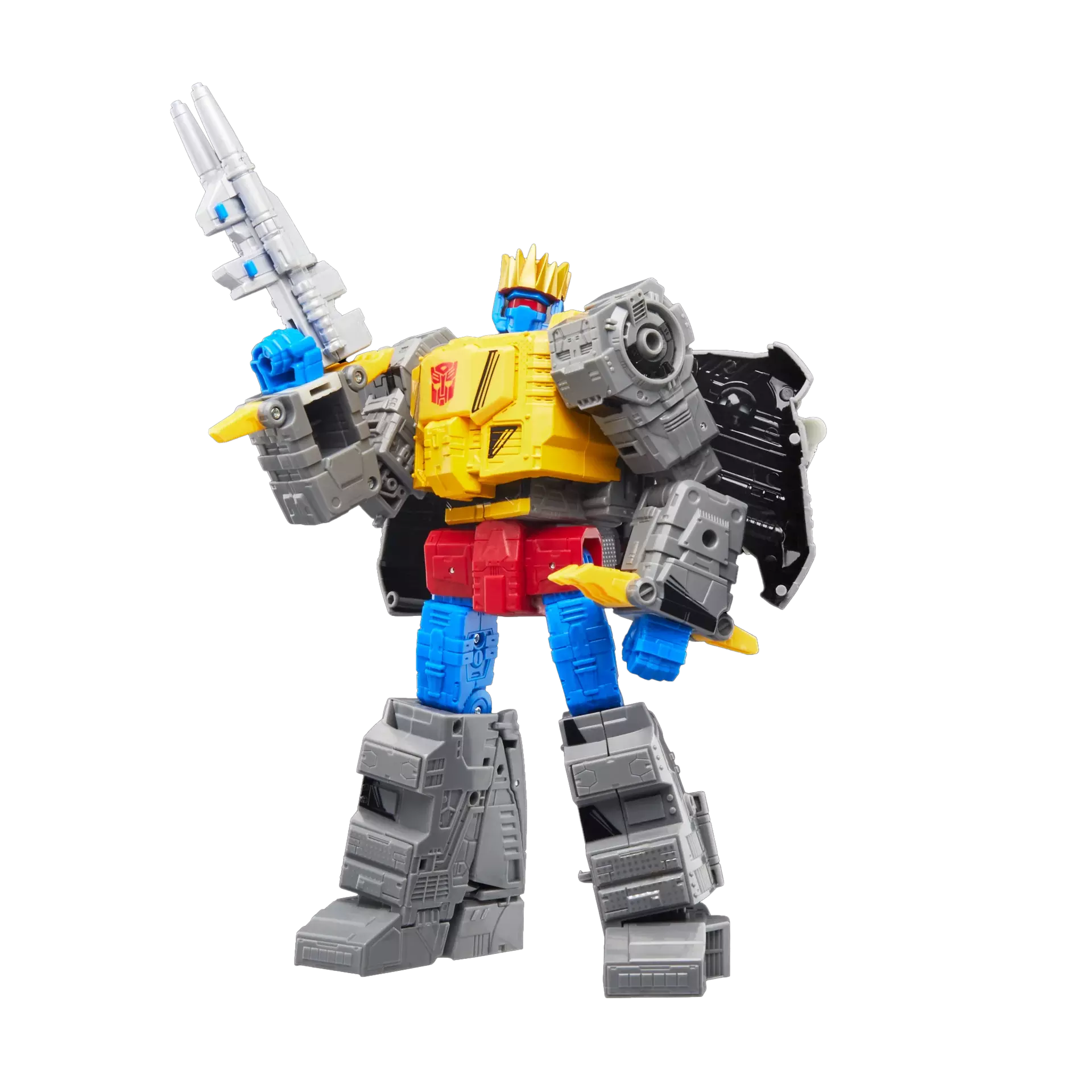 Grimlock leads a team of powerful Dinobots and fights on impulse, making him one of the strongest – and most unpredictable – Autobots. This Grimlock figure features comic-accurate deco and details, celebrating 40 years since the first Transformers comics were issued in 1984. The action figure converts from robot to T. rex mode and comes with a double-barreled blaster, a crown, and 3 sword accessories.